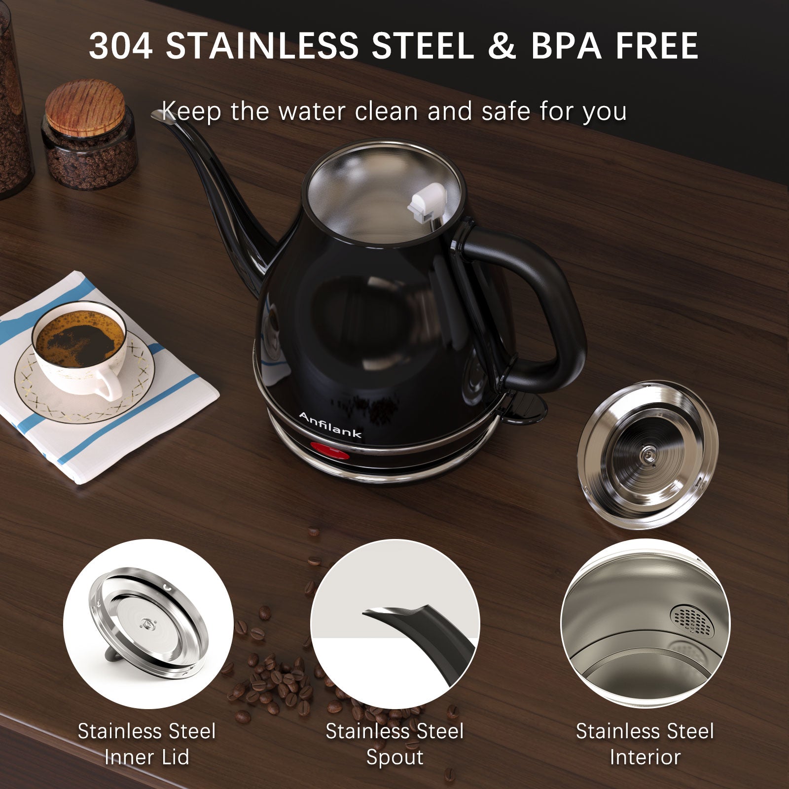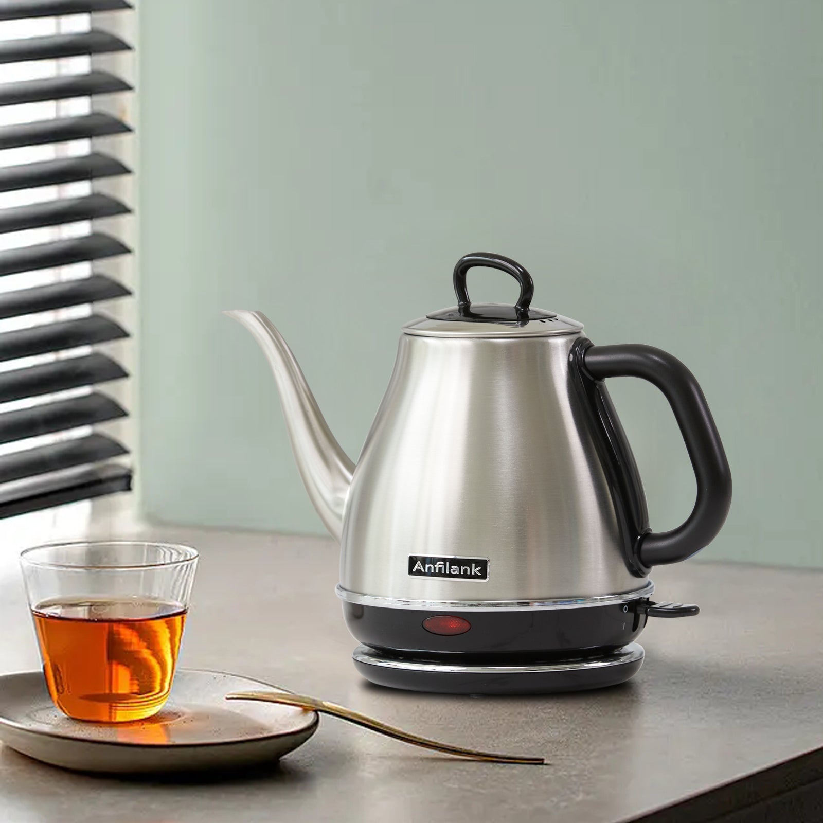 Anfilank Gooseneck Electric Kettle(1.0L), 100% Stainless Steel BPA Free Classic Pour Over Coffee Kettle, Electric Teapot with Auto Shut-Off Protection, JK-156